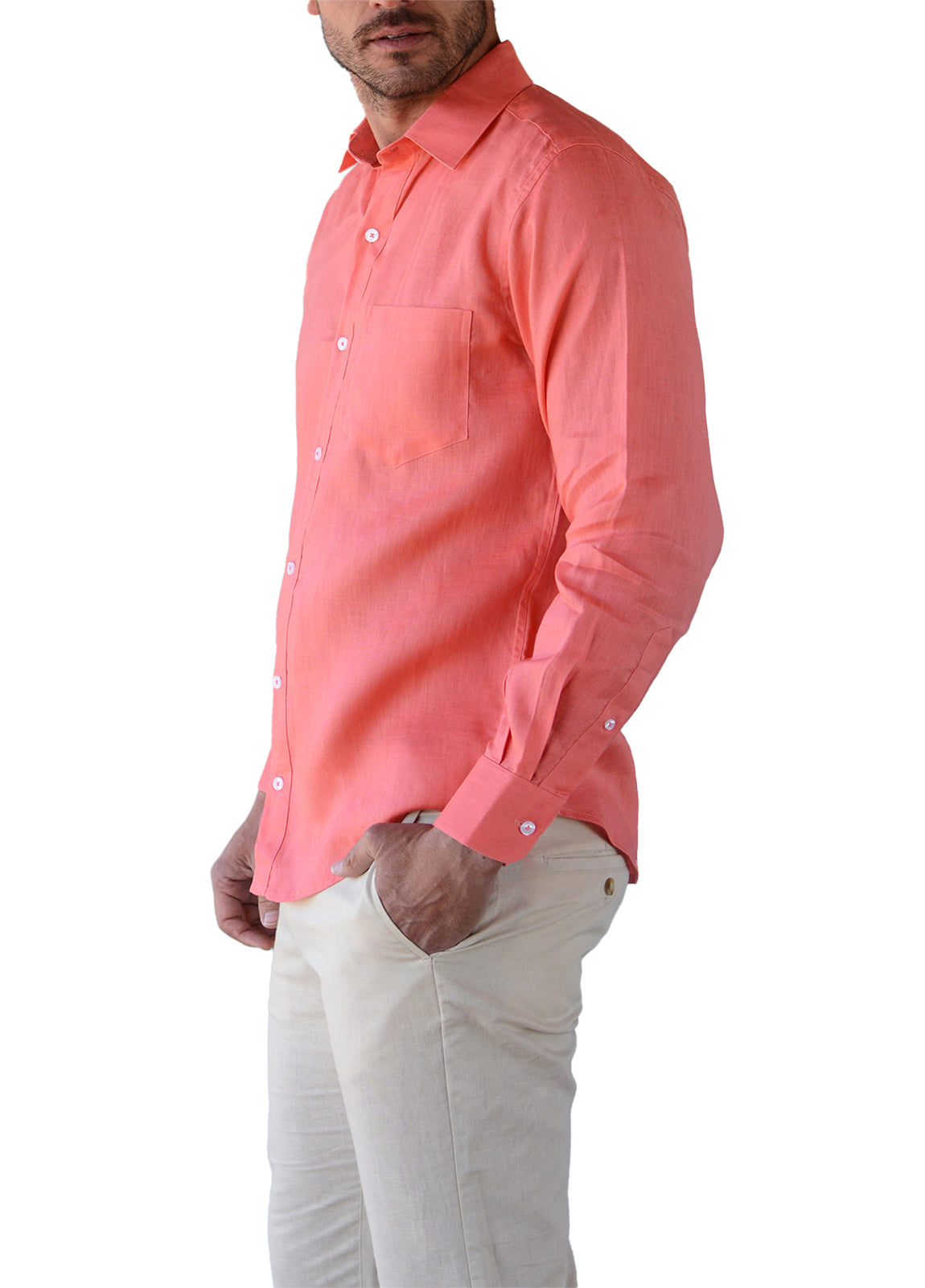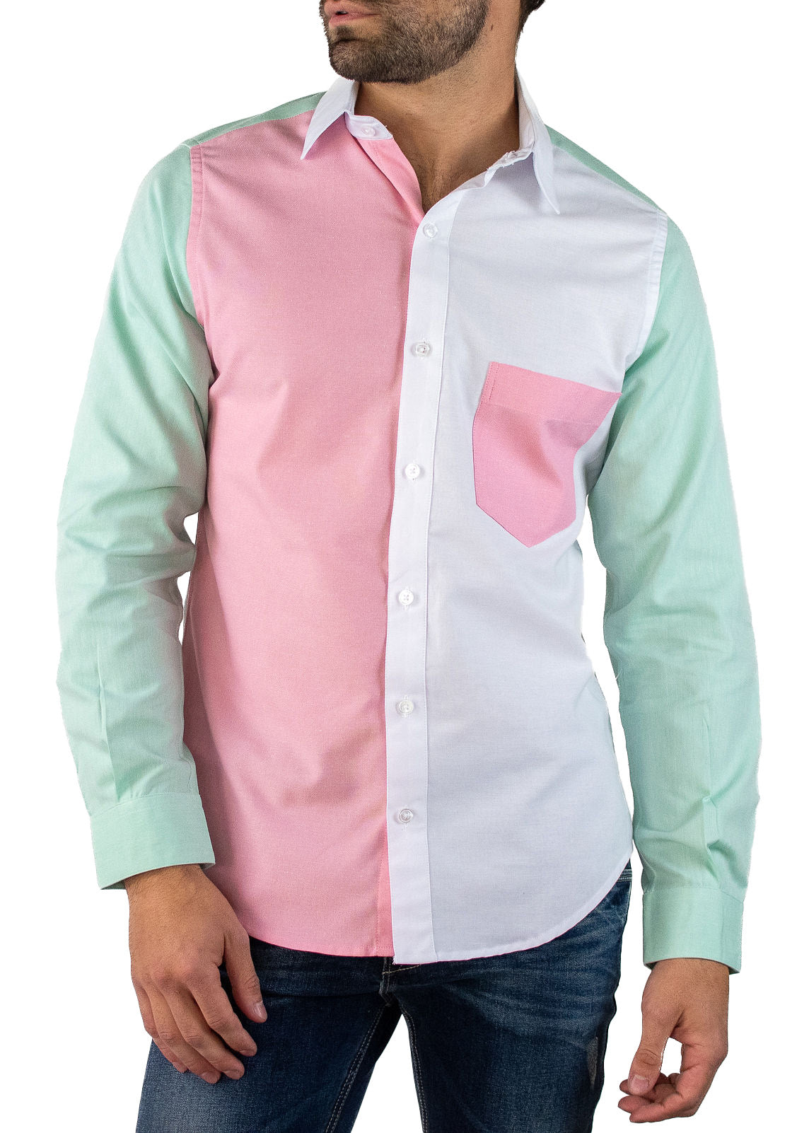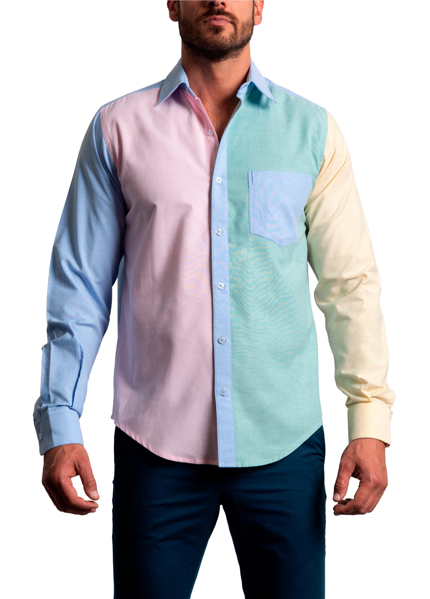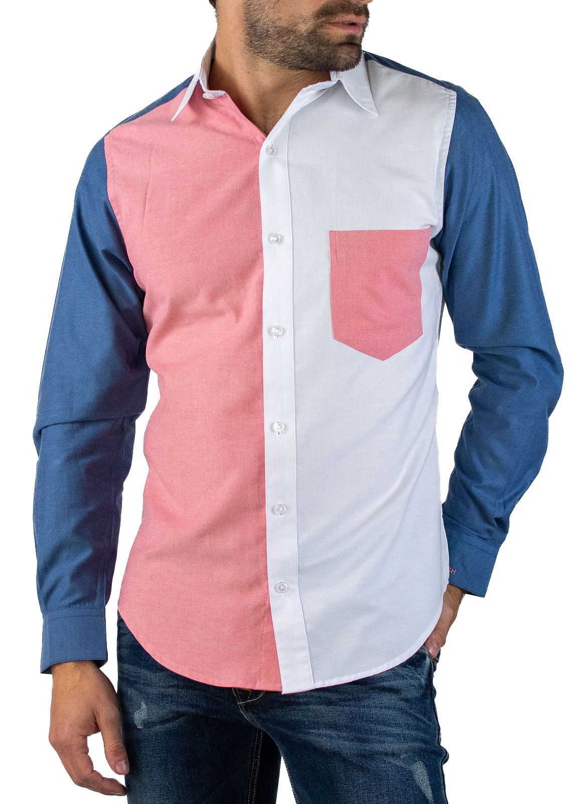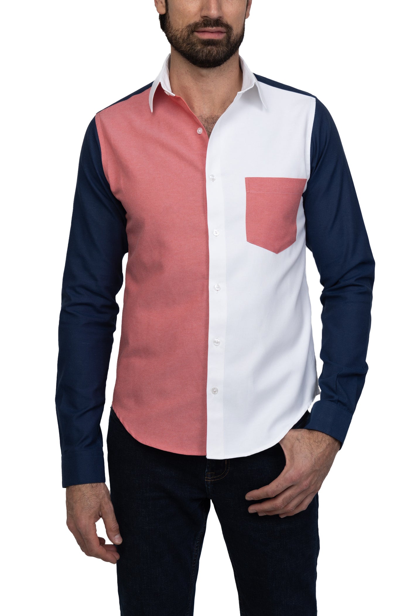Camisa Mónaco Oxford Blue & Coral Color Block
