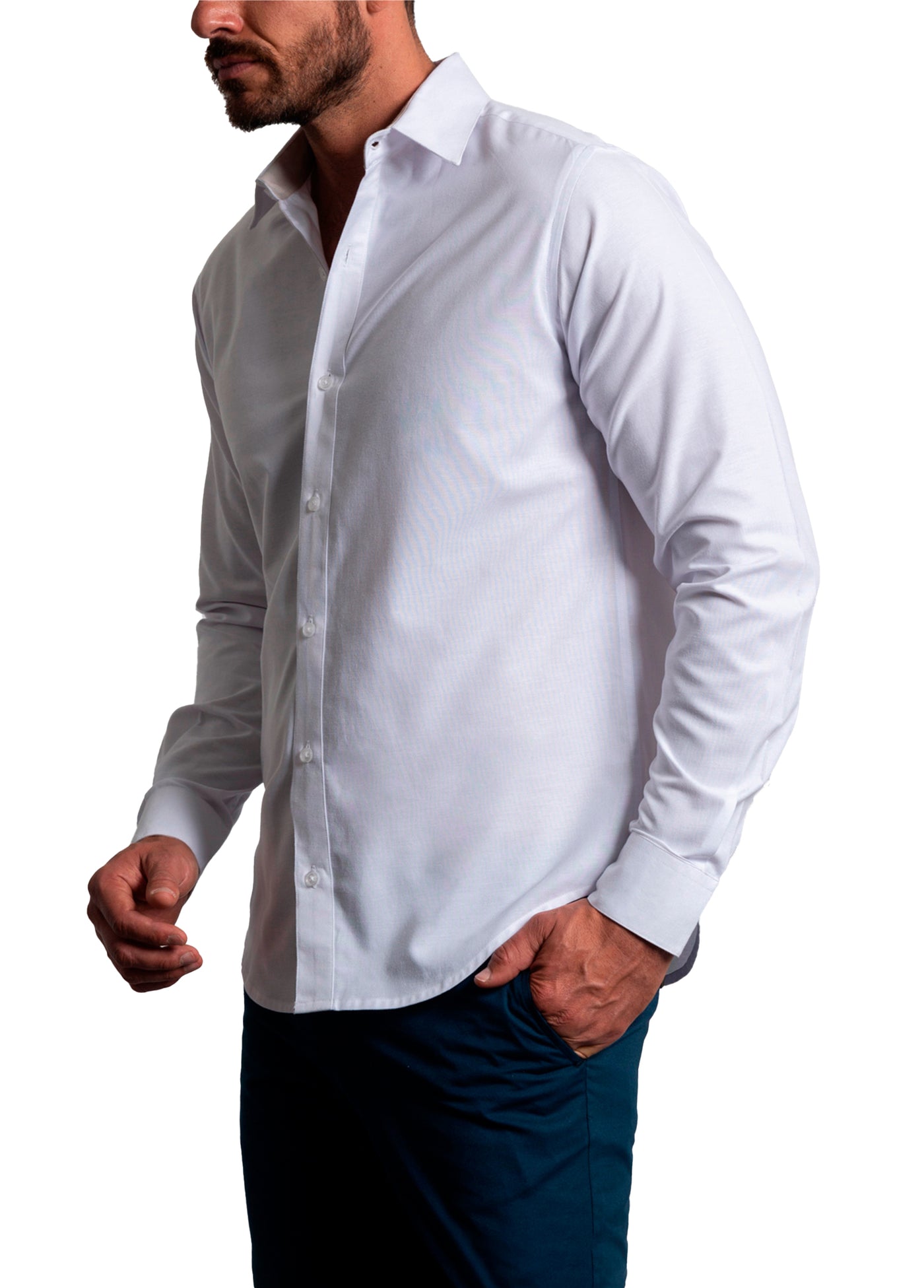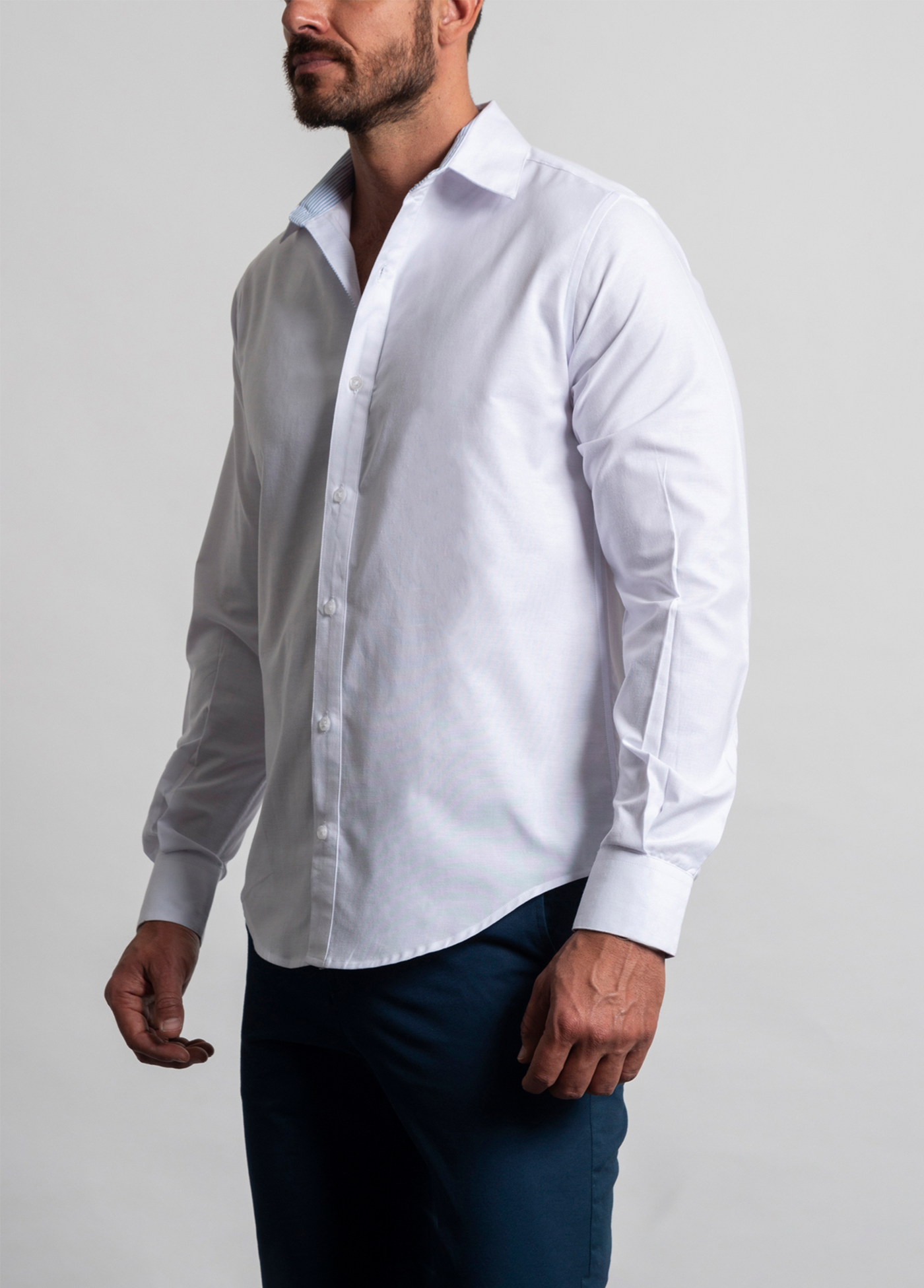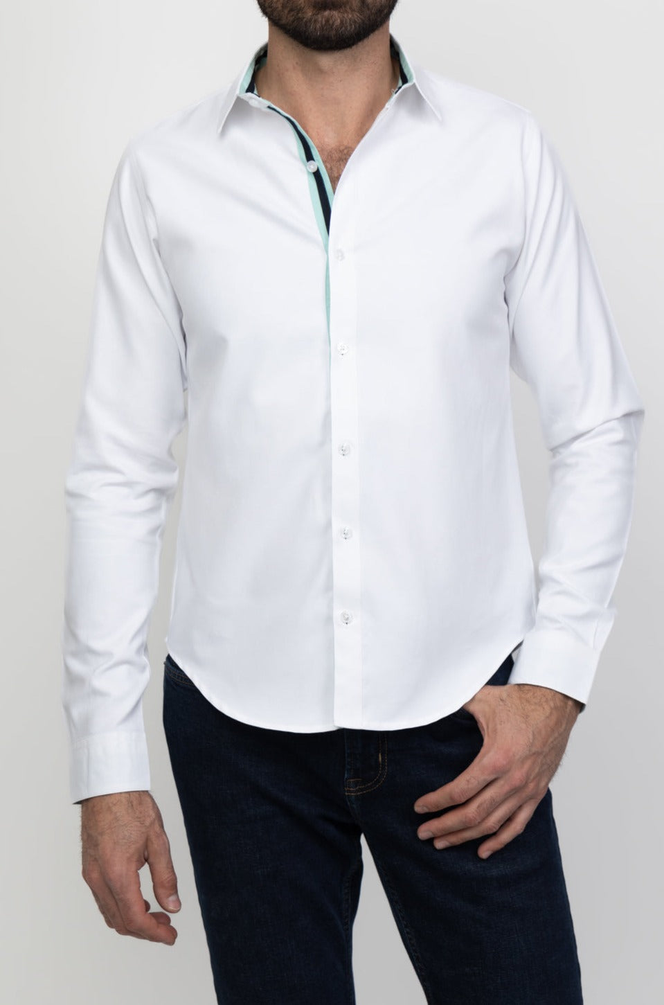 Camisa Mónaco Oxford Blanco & Detalles Aqua Y Marino