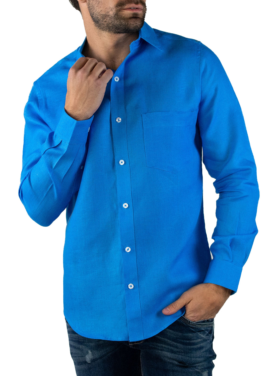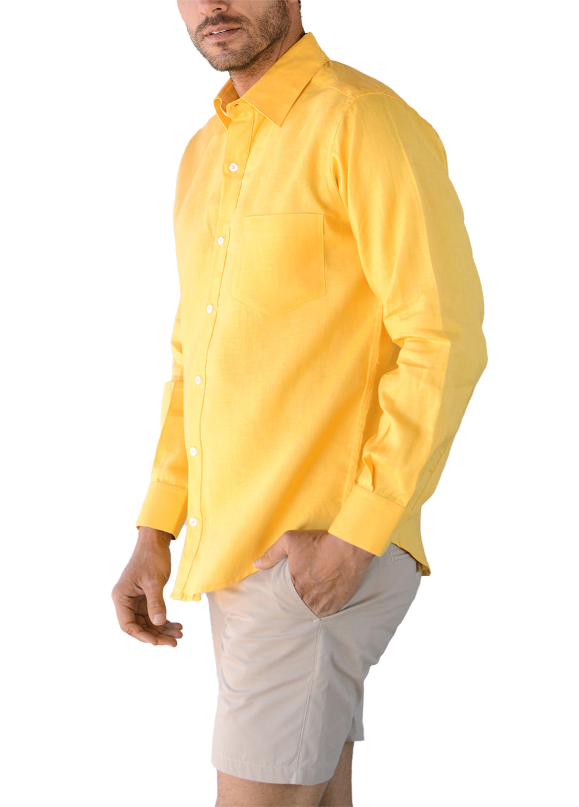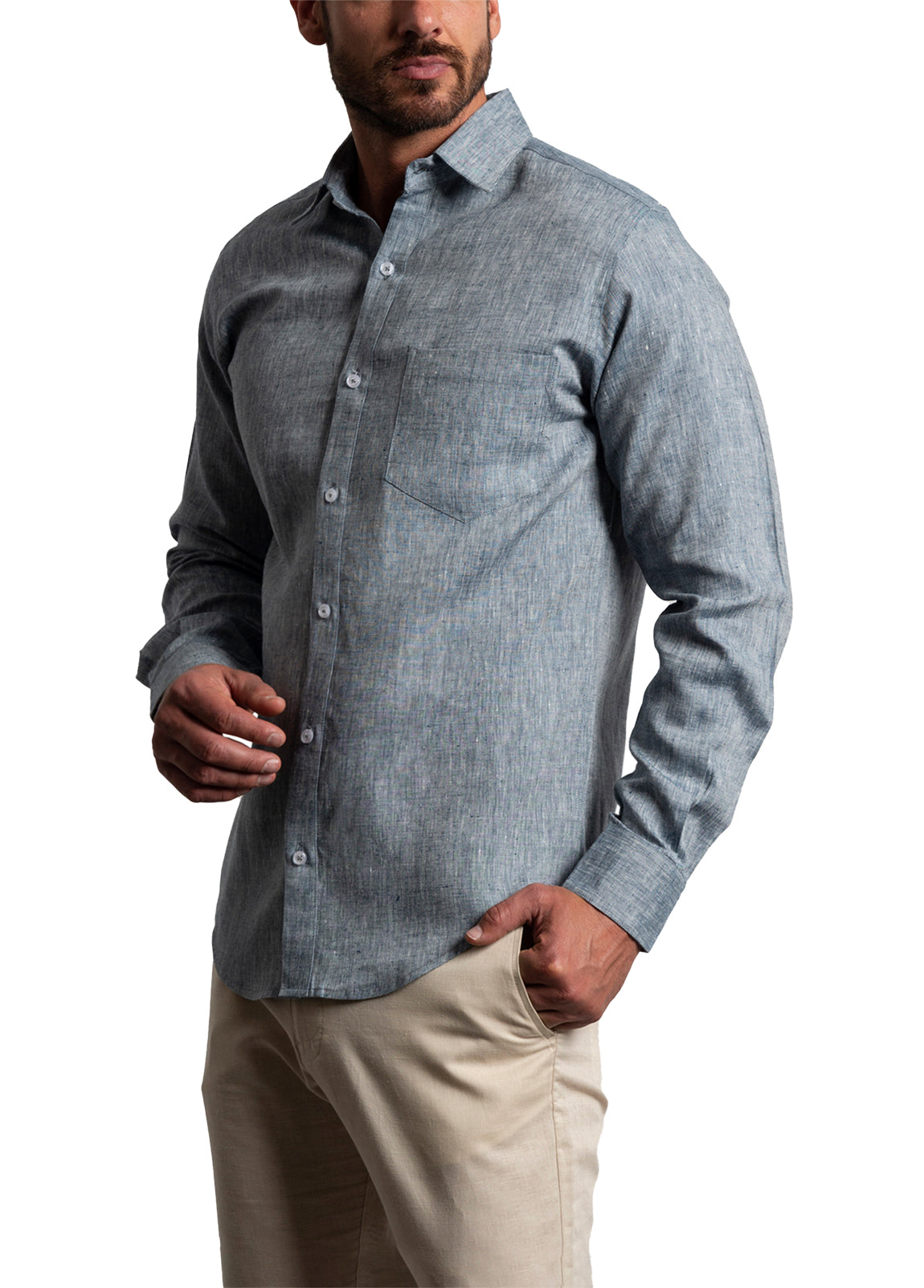 Camisa Mónaco Lino Blanco Con Detalles Interiores Mil Rayas