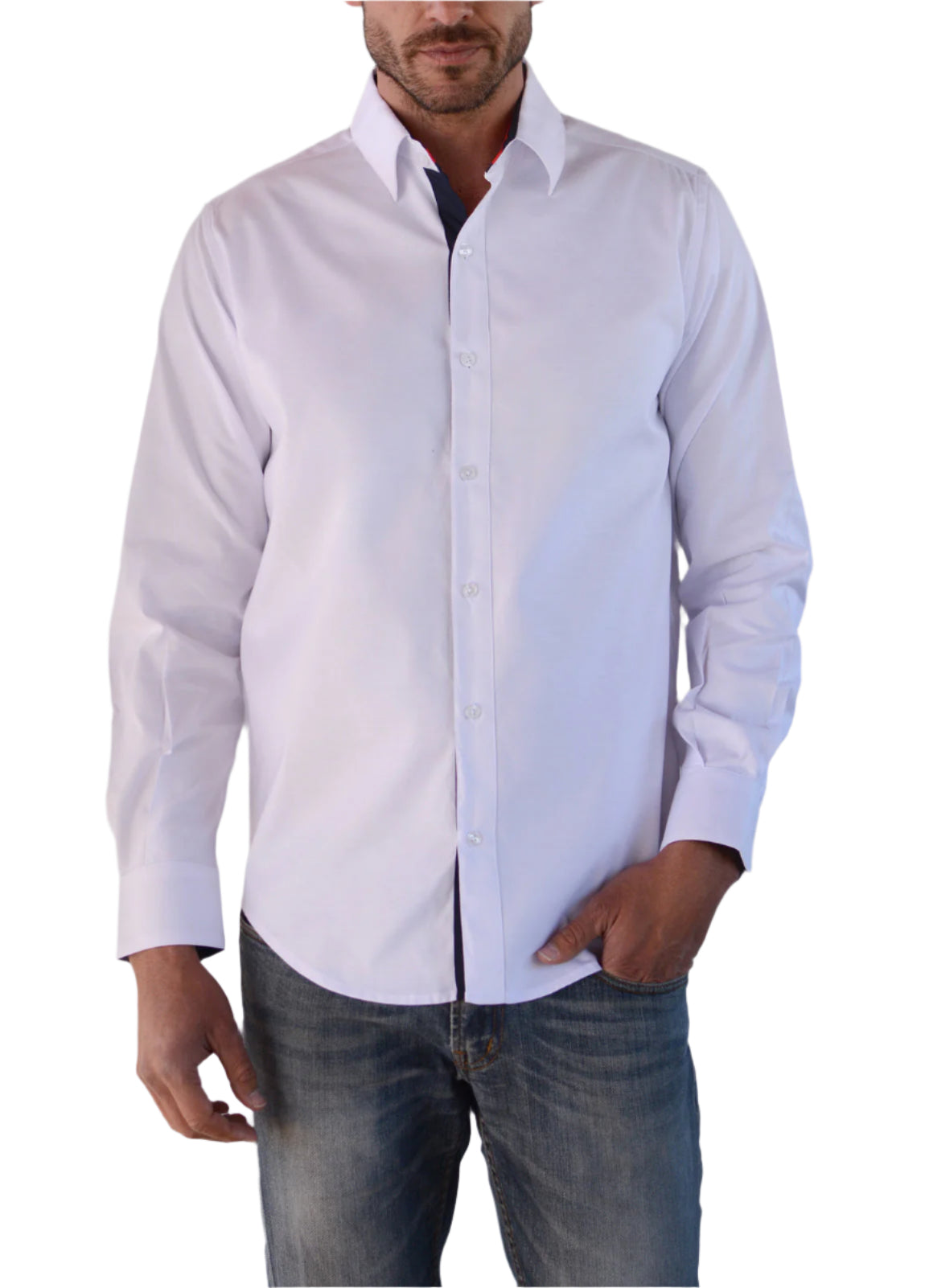 Camisa Mónaco Oxford Blanco Detalles Interiores En Rojo, Cielo Y Marino