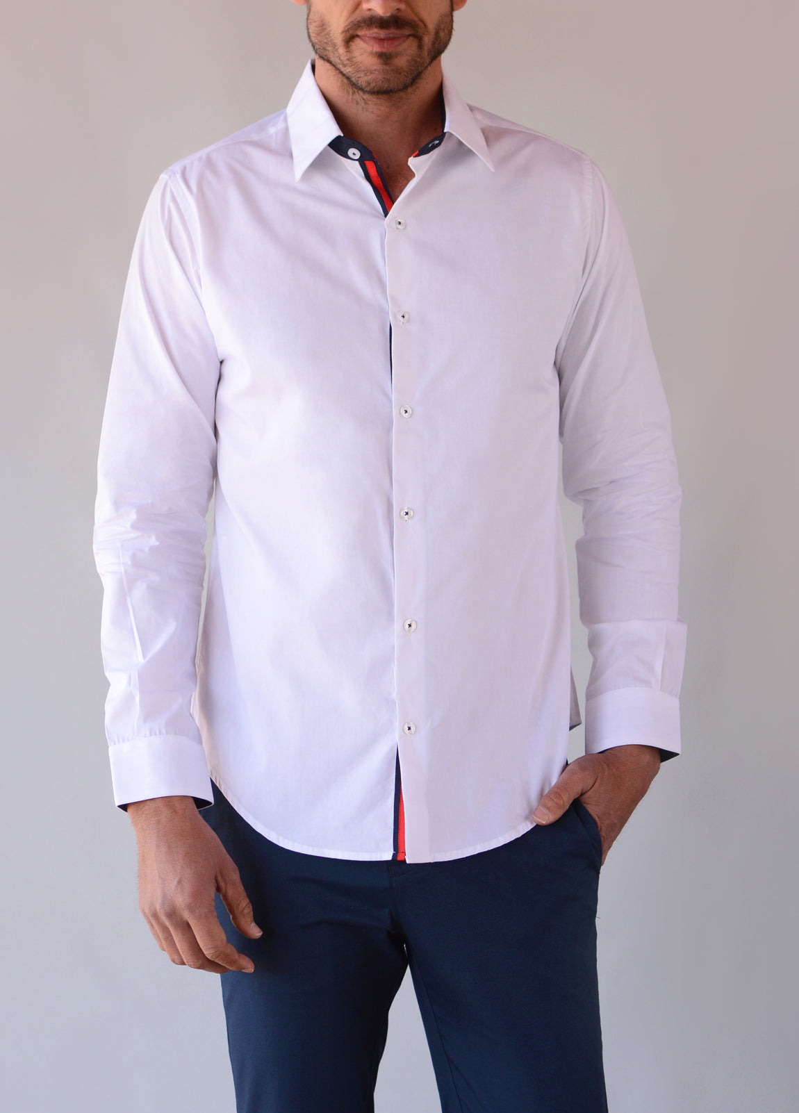 Camisa Mónaco Blanco Con Detalles Rojo & Marino