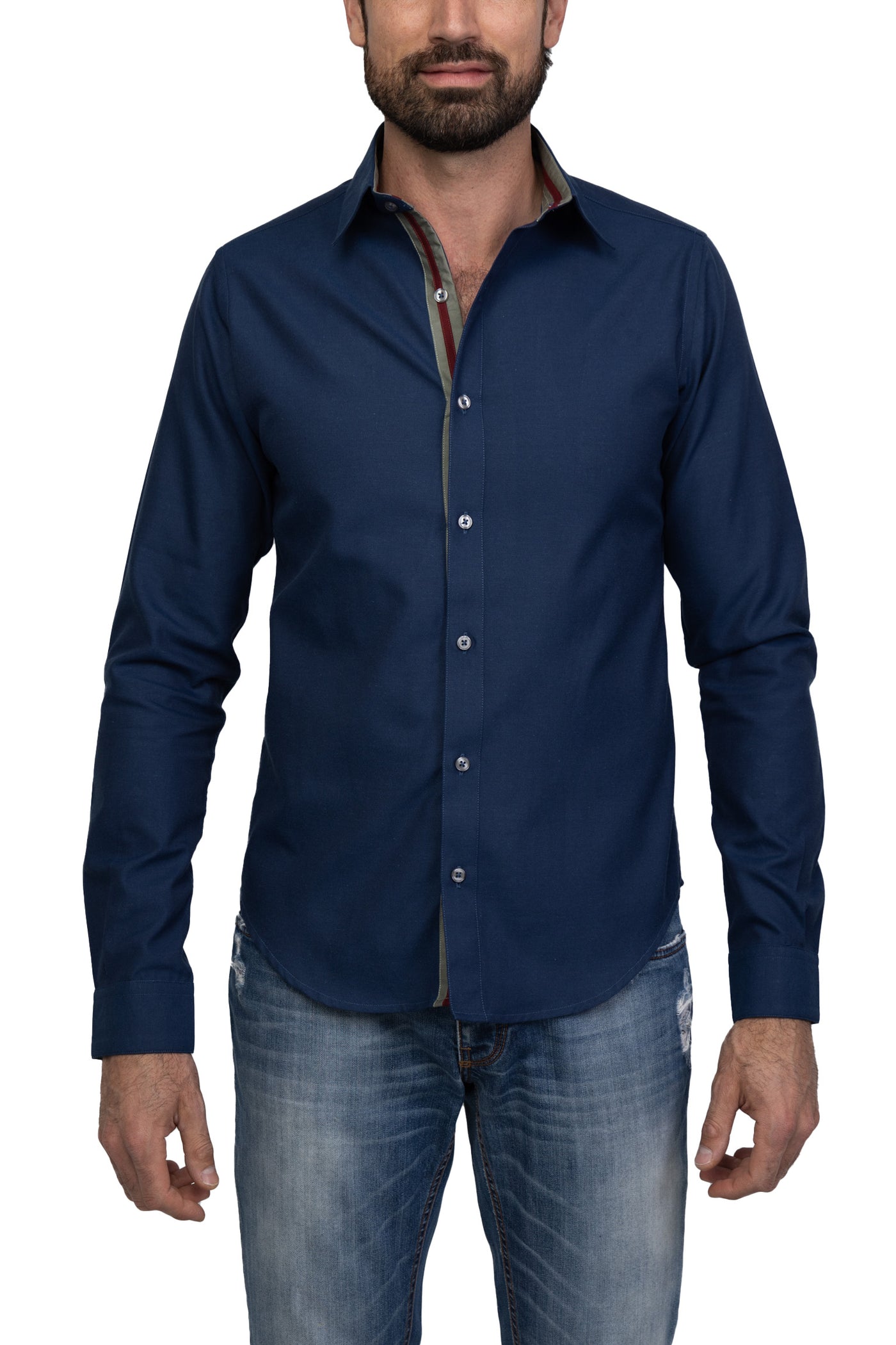 Camisa Mónaco Oxford Marino & Detalles Olivo Y Tinto